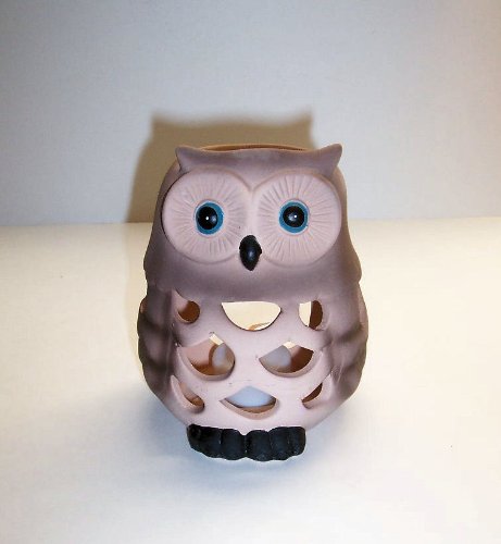 Wise old owl votive candle holder ~~ Flat look - Air brush painted - Hand painted detail ~~ ~`Made of durable pottery clay ~~ Open in the back for votive candle - Open spots in the front for light to shine threw ~~ Owl size: 3.9 in. x 3.38 in x 4.96 in.